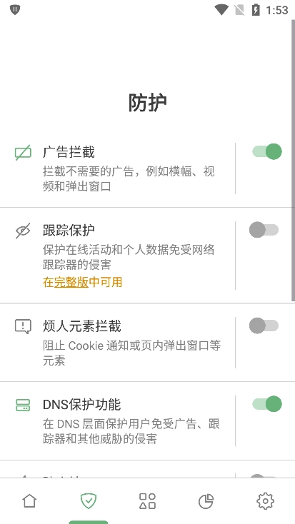 5、调整拦截广告的强度