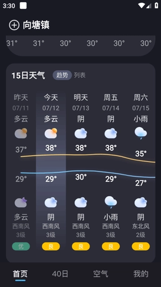 5、40日内能够查看一段时间的天气走向。