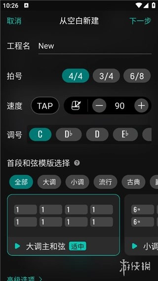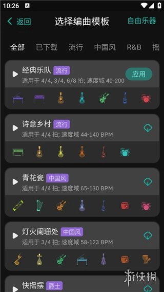 3、从系统提供的多种模板中挑选合适的编曲模板。