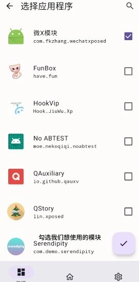 3、在模块列表中长按任意模块并且选择支持,还有框架以及管理器支持的问题解答