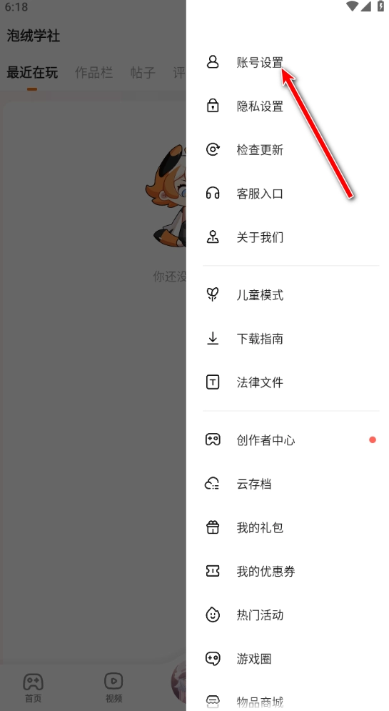 2.点击账号设置。