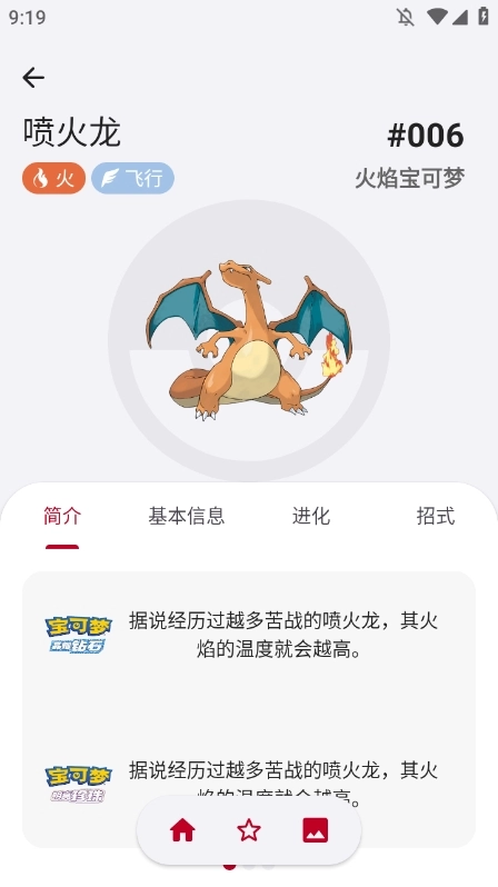 进入详情页面后,我们就能查看小火龙的全部相关信息。