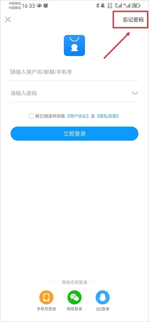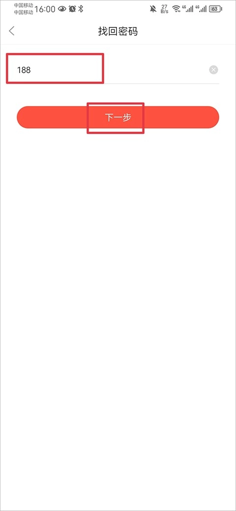 3、输入手机号/邮箱/用户名后,点击下一步。