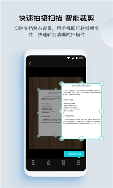 2、自动锐化图像高光区域,将透视变形的画面校正为平面效果,把图片转换为PDF格式,自动识别图像边缘轮廓,对文档进行格式化处理;