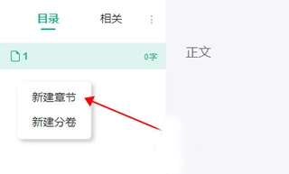 3、在目录区域点击右键,选择新建章节,之后就能在正文区进行创作了。