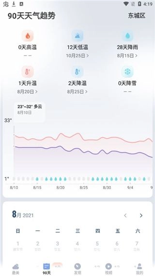 90日天气预报:提供90日天气预报功能,让您预知未来天气,出行轻松无忧;
