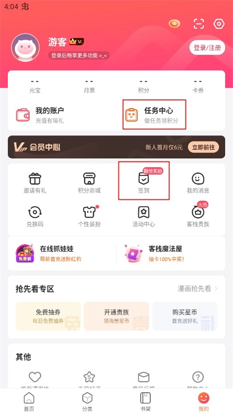 每周福利体验,阅读追书更顺畅!每日任务轻松领积分,热门游戏皮肤等壕礼领不停!