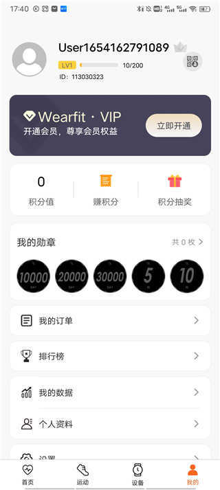 4、在“我的”页面中,用户可以查看勋章、订单、个人资料等详细信息。