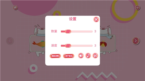 4.点击设置,选择优应逗猫玩具显示的数量、运行速度,是否播放软件触碰声音、背景音乐、振动效果;
