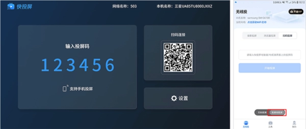 -扫码投屏:点击该功能选项后,用手机摄像头扫描分享的二维码,就能马上完成投屏操作。