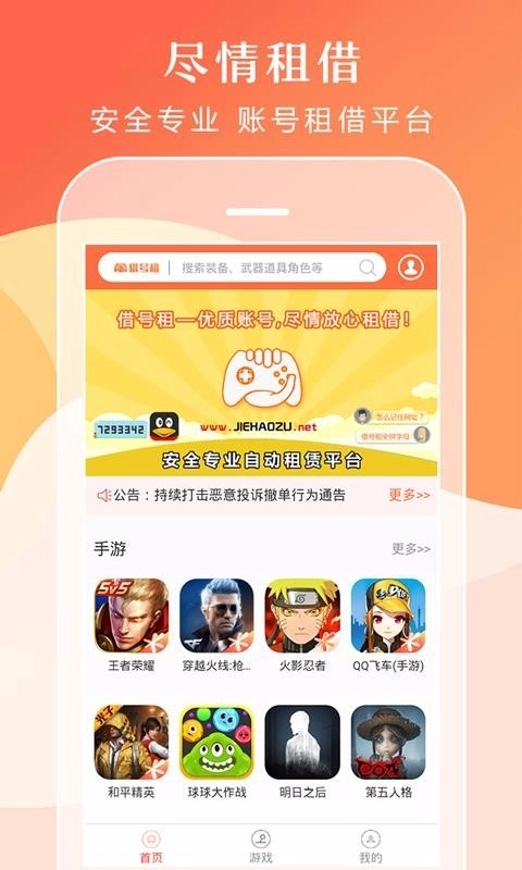 1. 实时推荐:借号租首页会为用户推荐当下热门游戏以及各类优质账号,帮助用户更轻松地找到符合心意的账号资源。