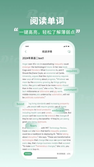 1、背诵进度监控,系统能够记录用户的背诵情况,并与相关训练内容相结合,确保学习进度可视化,让用户清楚自己的学习成果与不足之处。