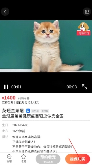 3、平台提供资金托管服务,待确认收到宠物后再行放款,同时为您提供10天的健康保障期,若出现纠纷会快速介入处理。