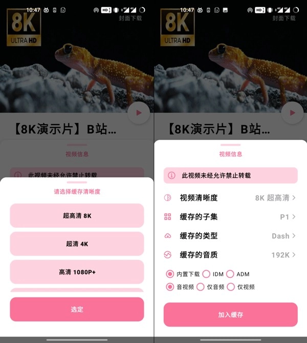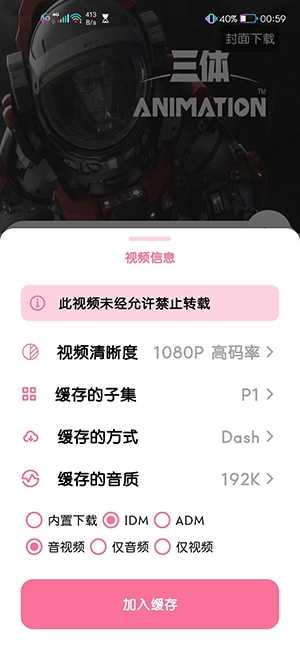 4、最后依据自身需求选定清晰度、类型、音质等选项,点击加入缓存就可以了