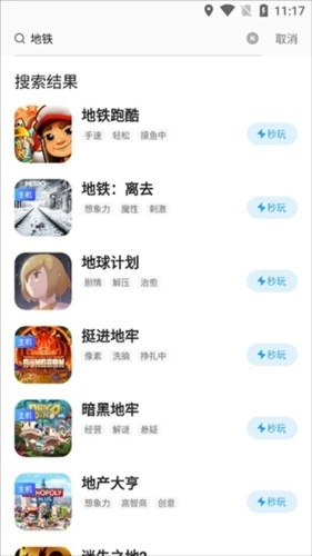 4、点击“秒玩”就可以在手机上玩电脑游戏。