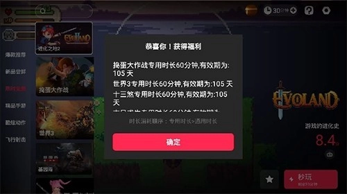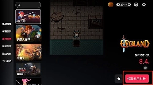 1.打开软件后,点击右下角的领取专用时长按钮。