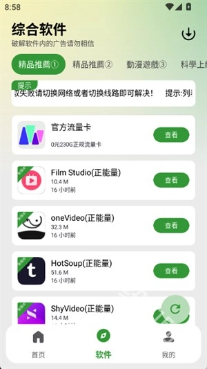 2.进入App首页,页面推荐了当前热门的软件资源