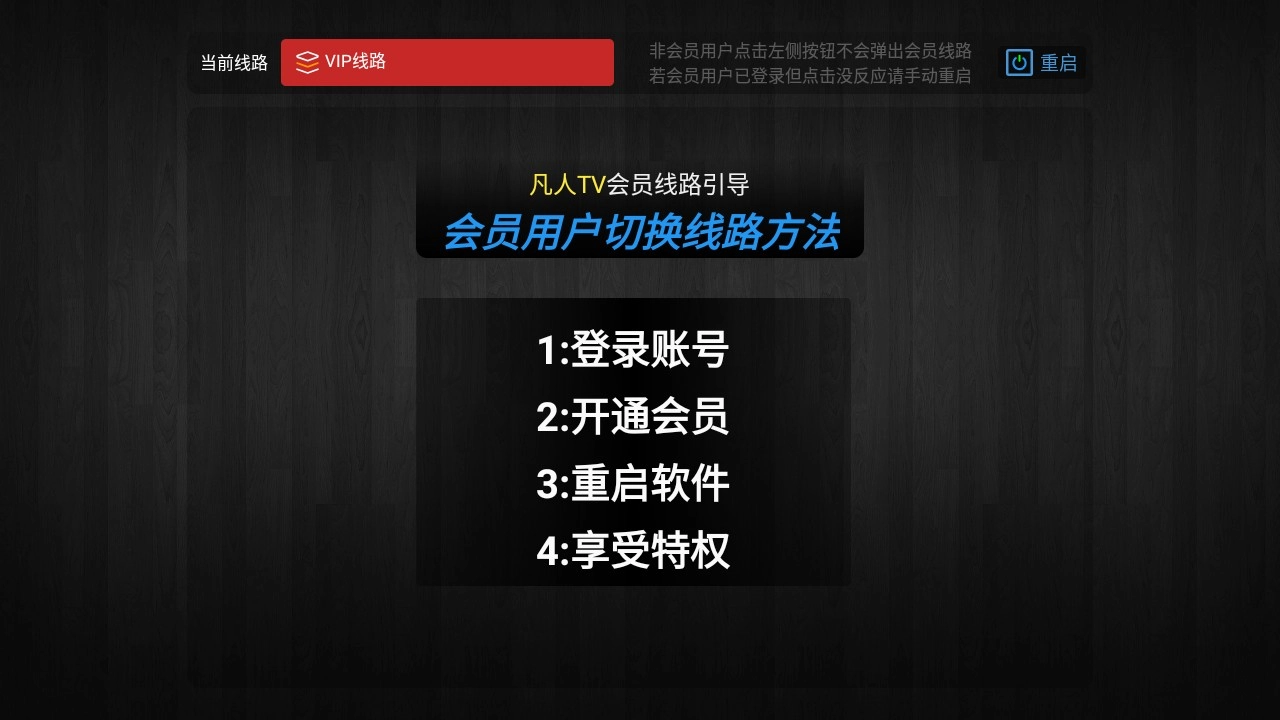3.点击会员线路,切换线路后点击重启按钮