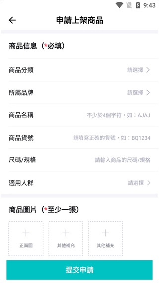 3、在商品上架申请界面填写商品相关信息,完成后点击提交申请就可以了。