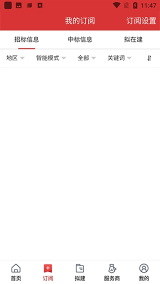 2、点击订阅后,您所订阅的招标信息将在此处展示。