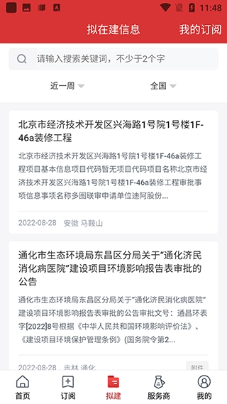 3、点击拟建,在这里可以搜索到最近的拟在建信息;