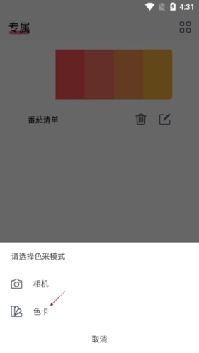 2.点击其中的色卡功能