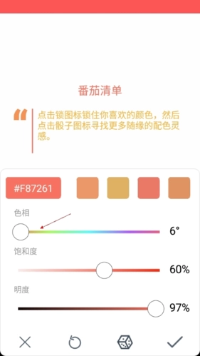 色彩能够调出特定的颜色,而且调配方法十分简单。用户只需挑选对应的颜色,再对其饱和度等数值进行调整,就能完成特定颜色的制作与调配。