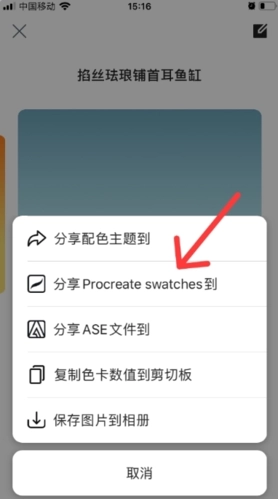 2.点击其中的导出分享功能,即可将你所需的颜色提取至Procreate中。