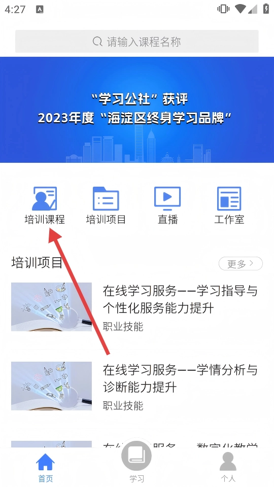 1、在首页点击【培训课程】,可进入培训课程页面。