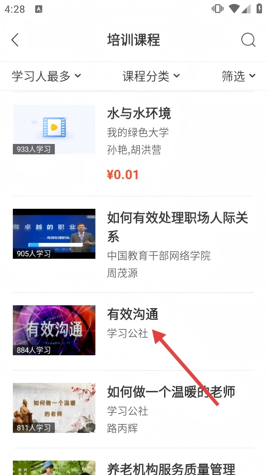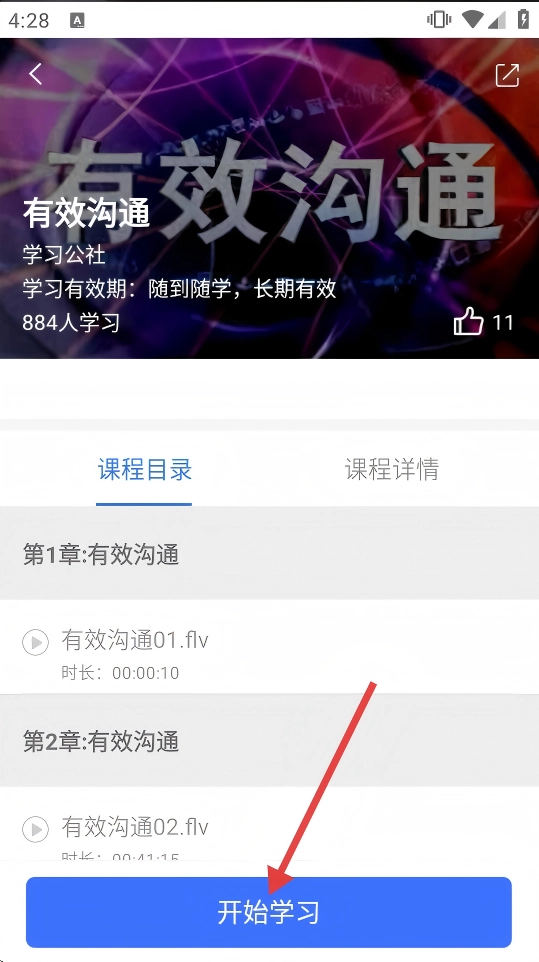 2、在培训课程列表中点击【有效沟通】课程,可进入课程详情页。