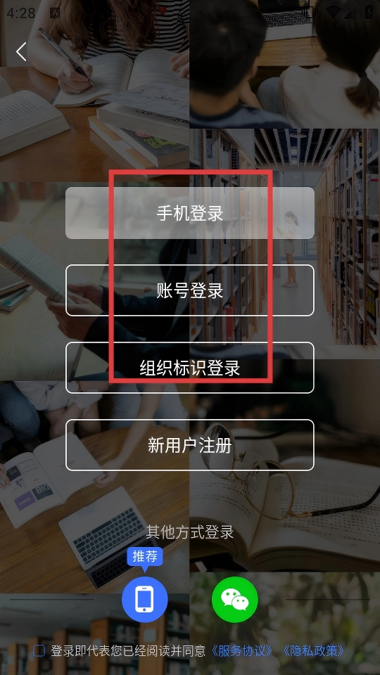4、登录界面提供【手机登录】【账号登录】和【组织标识登录】三种方式供选择,完成登录操作后就能开启课程学习。