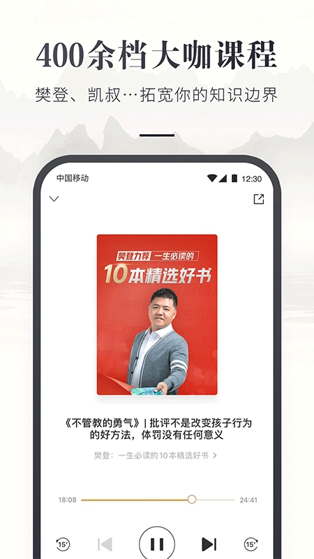 汇聚樊登、凯叔、一刻talks等400余档音视频课程,好课不贵,大咖云集;