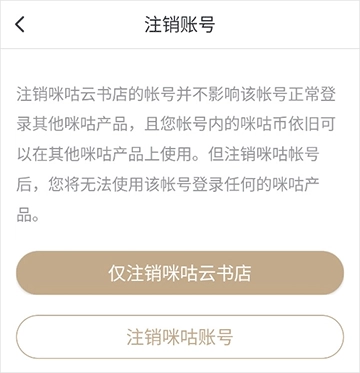 4、点击“申请注销”,再点击“仅注销咪咕云书店”
